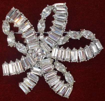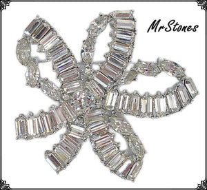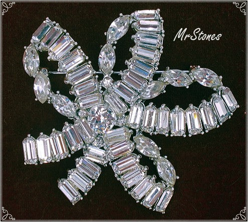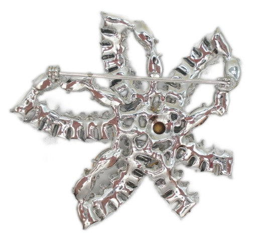 ~Vintage Big Bright Bow Brooch Crystal Rhinestones 2 3/4" Silver Rhodium Plated.  Tons of Holiday Sparkle!  Very Nice Condition.