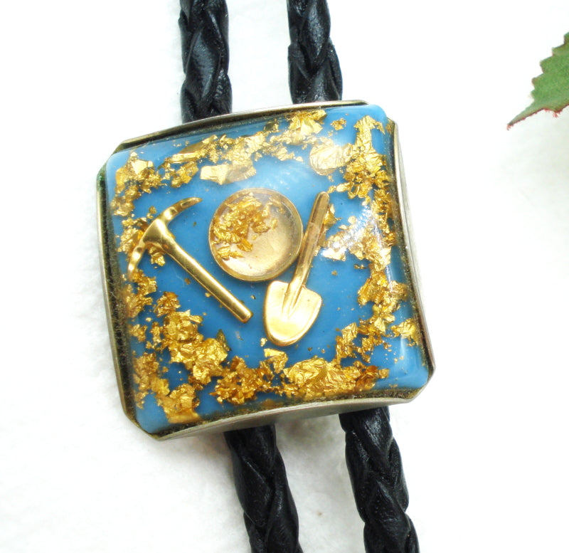 Vintage Bolo Tie Miners Tools Gold Flakes 925 Tips