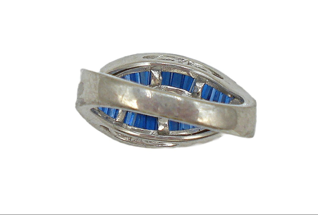 ~VINTAGE RING TESTED 925 STERLING SILVER BLUE BAGUETTE CRYSTAL ROUND CZ 5.1g SZ 9 1/2" wide at top.